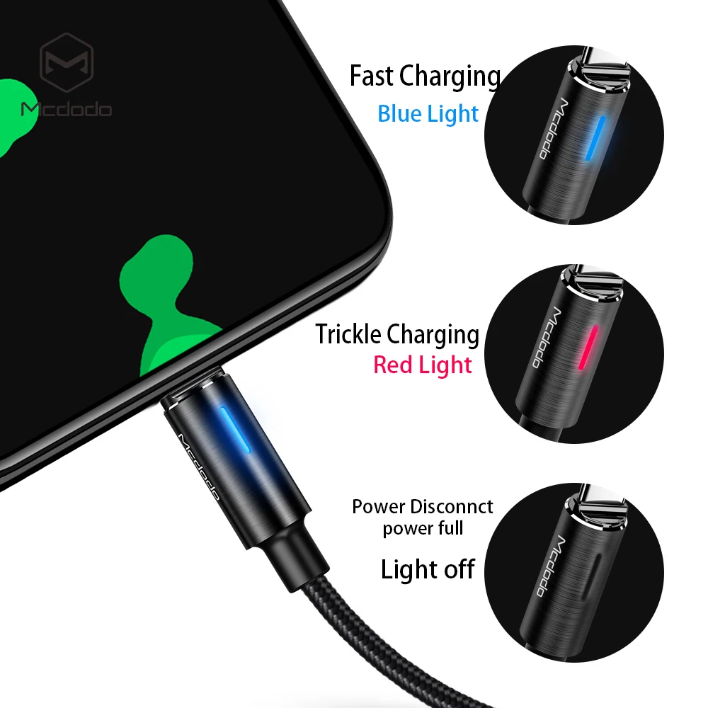 Mcdodo USB Type C Cable Fast Charging Auto Disconnect USB C Data Cable For Samsung Xiaomi Oneplus 5 with led Light Type-c Cable